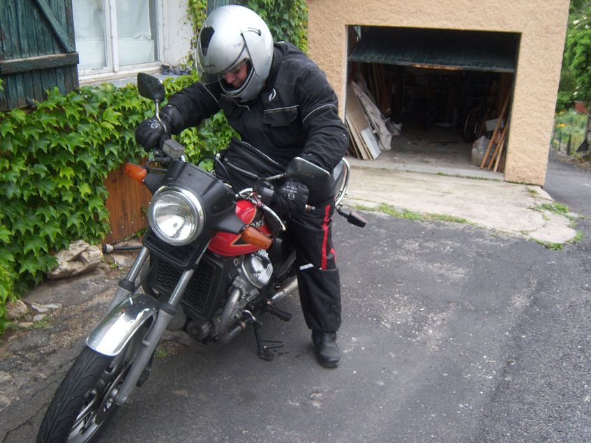 Et maintenant je roule avec ça.<br />Le pégaso qu'on me proposait pour 1500 e n'a jamais voulu démarer malgré le changement de lanceur et puis quelle galère pour trouver des accessoires...<br />Avec le kle ça a l'air plus simple et puis Choky m'a dit que c'était une bonne bécane, qui ne demandait pas trop d'entretien, alors...
