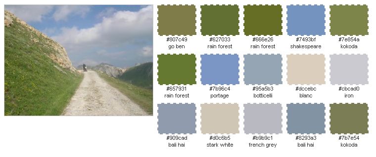 Au sujet des couleurs, il y a cet outils http://bighugelabs.com/flickr/colors.php qui permet de définir une palette à partir d'une photo.