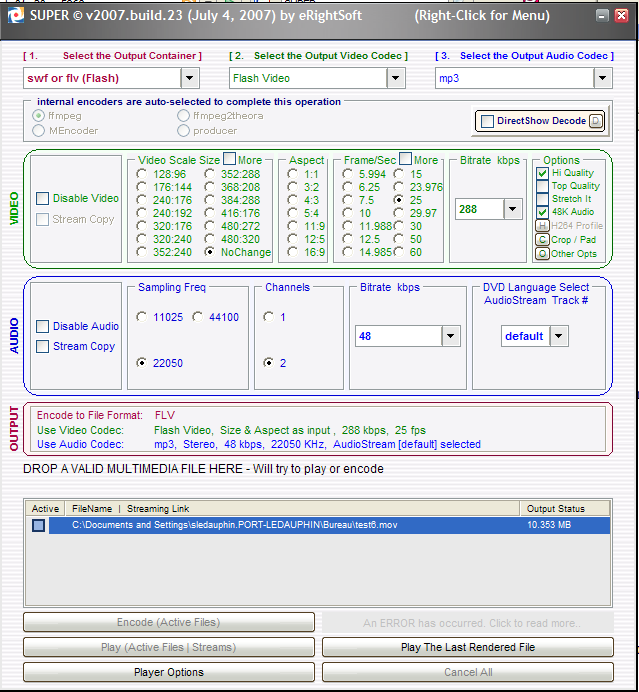 Riva flv encoder ne veut pas encoder mon fichier wmv ... :(