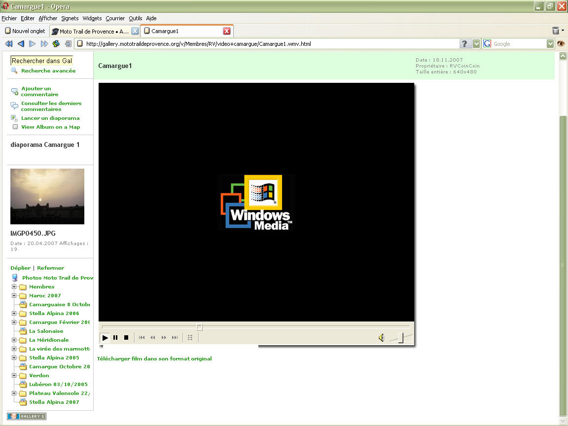 La vidéo qui est dans la galerie, pour moi ça ne passe pas du tout, je n'ai que le son.