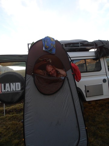 Gégé a fixé les sangles tout autour de la tente pour éviter qu'elles ne s'installent dans nos