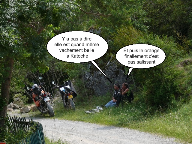 Jamais deux sans trois me direz vous ? Et bien non ! Je reste concentré, joue de l'embrayage, respire profondément et arrive au bout ! Quel pied ! J'ai la gorge déssechée mais suis extrêment content de moi :lol: En y repensant, ce qui m'aurait le plus embêté ce n'est pas de tomber, mais de rayer la peinture de la pauvre Katoche :lol: