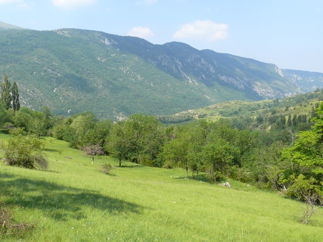 Car l'endroit est superbe ! Entre le tunnel de verdure, le pierrier, les falaises, le chemin en corniche qui suivra et la prairie avec sa ferme en ruine, c'est certainement le plus beau passage de la balade ! Par contre si le pierrier avait été un peu plus loin, là où le chemin était à flanc de falaise, je ne sais pas si j'aurai osé me lancer ! :oops: