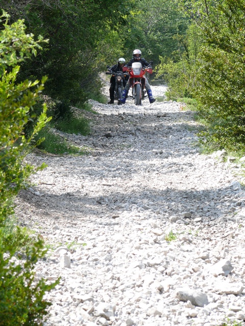 Nous entamons donc une piste, qui devient un très joli chemin de sous bois, genre tunnel végétal, qui me rappele des souvenirs :mrgreen: Et oui cela correspond bien à la description faite par Djemol, et nous roulons droit vers le fameux ébouli ! :?