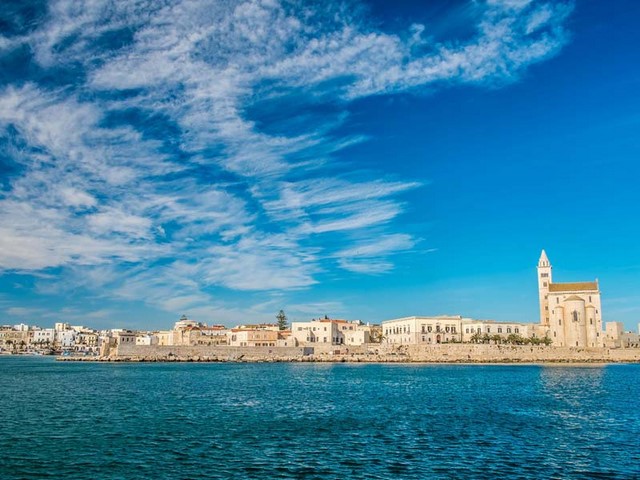 Jeudi 11 mai, visite de la très belle ville de Trani La cathédrale romane du XI et XIII siècles est sobre et imposante à la fois. Nous regretterons d'avoir préparé des sandwichs pour midi parce-que les petits restos tout autour du port de pêche très actif, proposent une variété infinie et bon marché de petits plats à base de poissons fraîchement pêchés