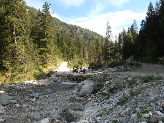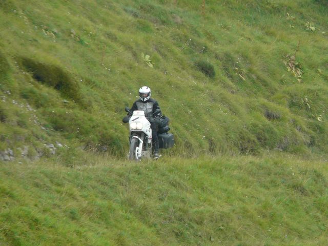 Ma moto a un drôle de comportement dans les épingles, je ne sais pas si c'est dû à la route humide mais ça ne s'arrange pas au fur et à mesure de la descente dans la vallée et me gâche le plaisir