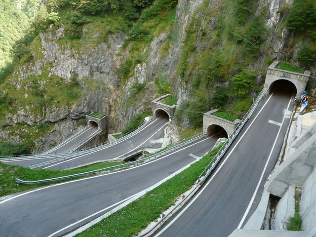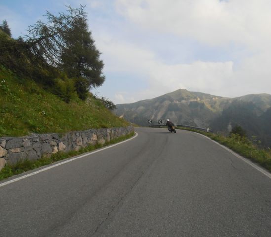 Nous repasserons par le beau col de Presolana déjà fait l'an dernier mais dans l'autre sens et après lui le Passo Croce di Saven qui a la particularité d'avoir des passages où la largeur de la route n'excède pas les 2 mètres