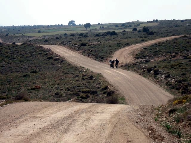 Alcaniz et nos premiers bocadillos en route vers Teruel un de nos nombreux demi-tours....y a pas de piste par là ! départ d'une piste à Las cueva de Canart en fait une autoroute