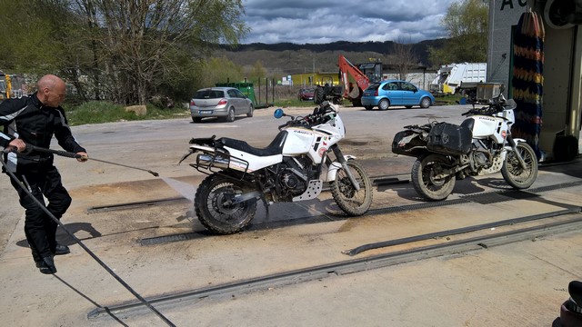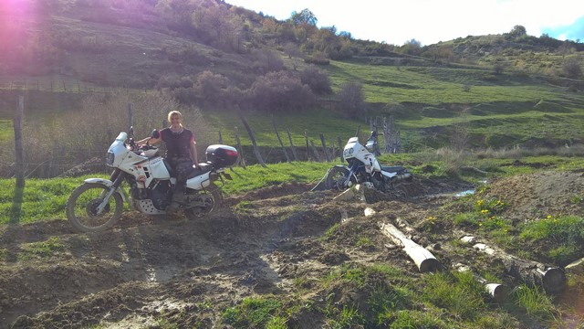 Ensuite ils nous taquinent parce-que nous voyageons avec de vieilles motos mais nous au moins, on pourra toujours les réparer sur le bord de la route contrairement à eux