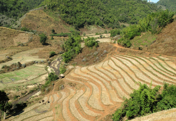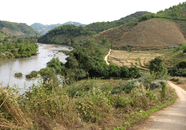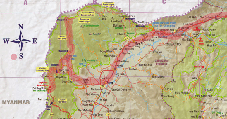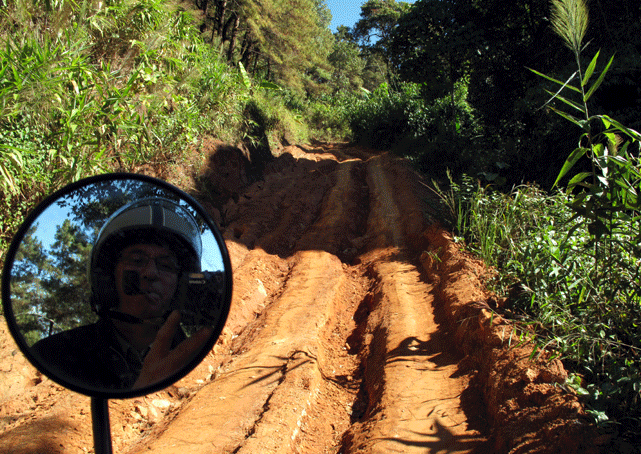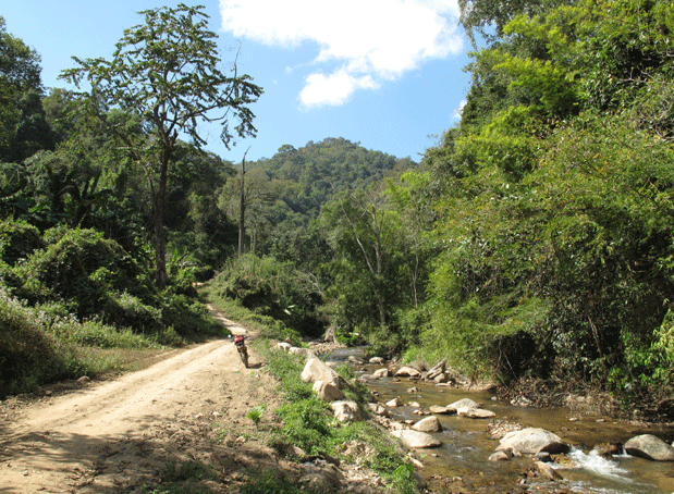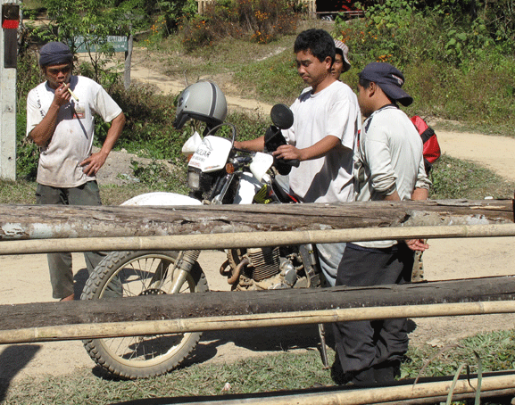 Au petit matin , je décide de longer la frontière du Myanmar mais les militaires ne me laisse pas passer , la route est coupée