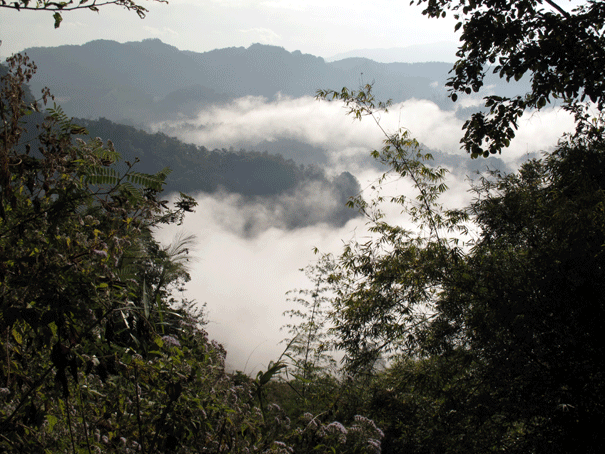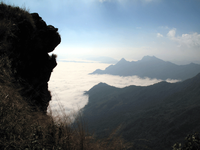 Le lendemain, brouillard du matin mais j' arrive à RAI PHU FA ou m'attendent 4 gamines du coin pour me guider vers le magnifique surplomb qui domine le LAOS
