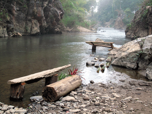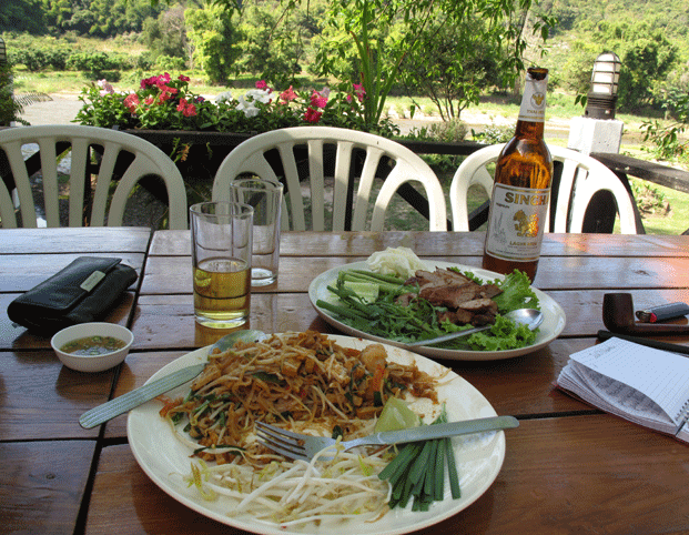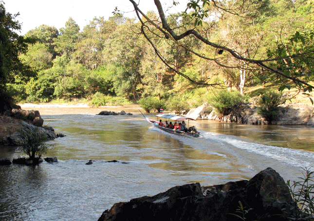 Encore tôt le matin, oui je suis un matinal et un couche tard surtout en vacances je longe par la piste la rivière Mae Nambok un affluent du Mekong