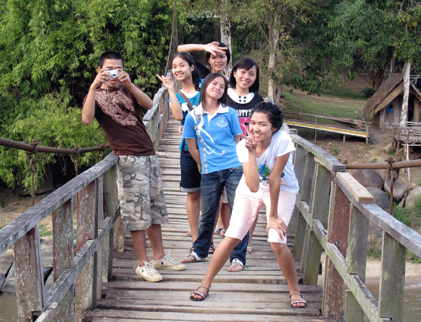Sur le pont les thaïlandais toujours prêt pour la photo