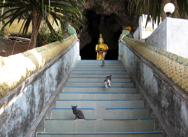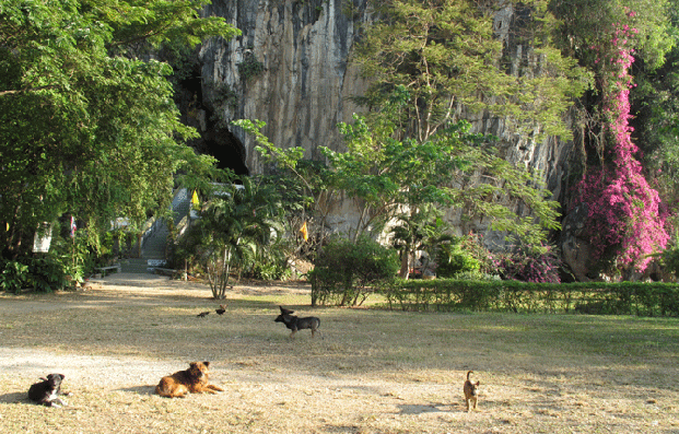 Le lendemain visite des bouddha cave avec compagnons chats et chiens