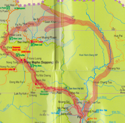 après avoir soigner ma gueule de bois, je parts de PAI par la super route de virages qui m'emmene à Chiang dao visiter une grotte de 750m de long