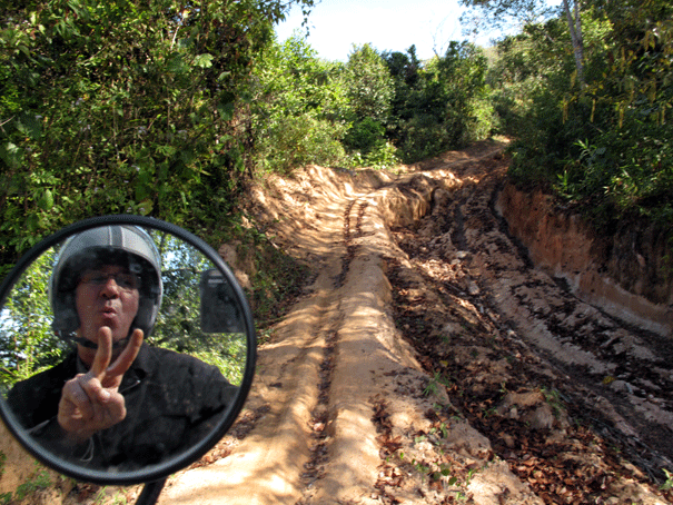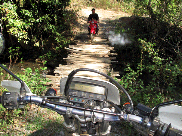 2-3 kms plus loin je me fait arrêter par des gardes forestiers qui me conseille de faire demi-tour étant seul ,60kms de piste pas facile et sans village .Je baragouine en anglais que je sais ce à quoi je m'attends et que je maitrise la situation.