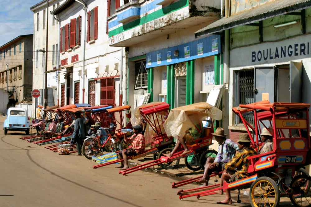 Entre une 2cv et une boulangerie, la rangée de pousse-pousses taxis, le temps des Français n’est pas bien loin