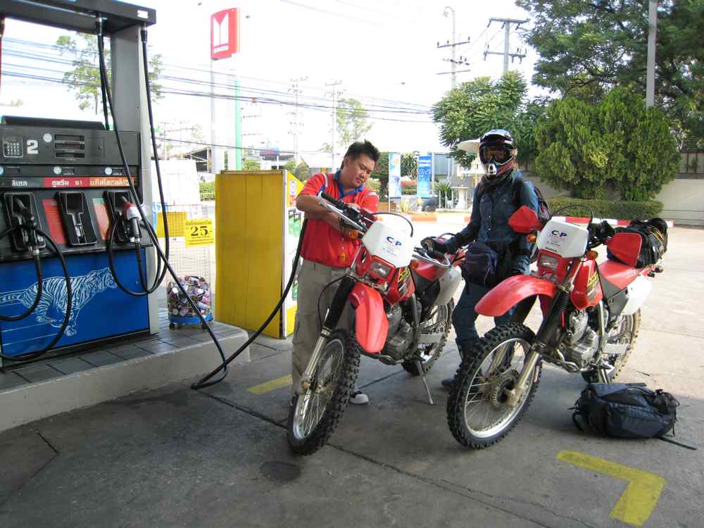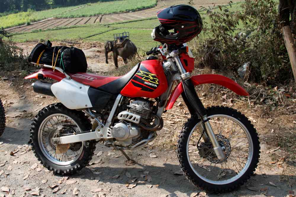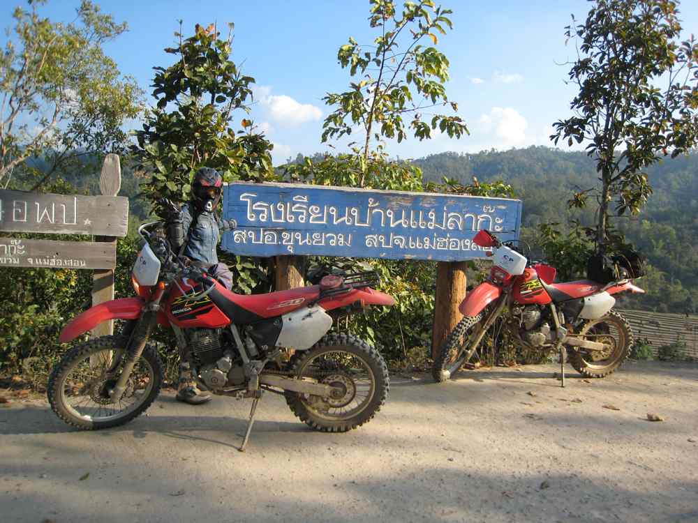 A Chiang Mai, nous avons loué 2 motos Honda XR 250 (15 euros/jour). Nous trouvons un jeune Thaï sympa, Wut, il a aussi un 250XR, il nous accompagnera durant 5 jours soit 1000 km tout rond dans la région nord-ouest de la Thaïlande.