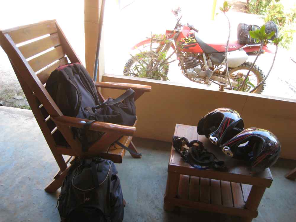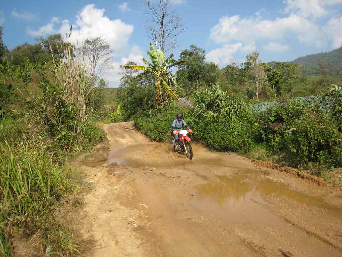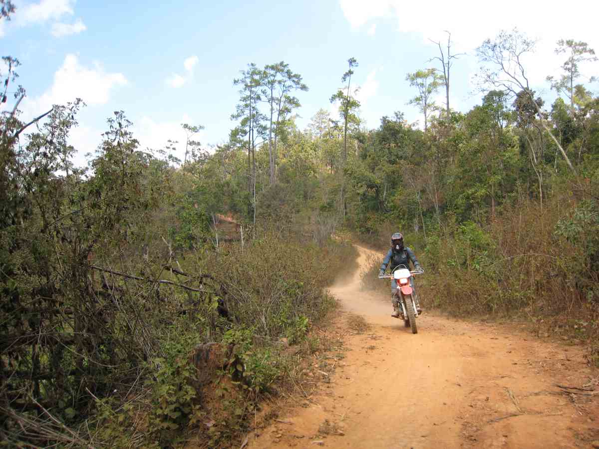 Nous partons vers 10 heures après avoir réglé quelques détails de location les motos ont l’air très correctes, nous ne savons pas pour combien de jours nous partons, maximum cinq, tout dépendra du rapport avec Wut notre guide, de l’intérêt des pistes …