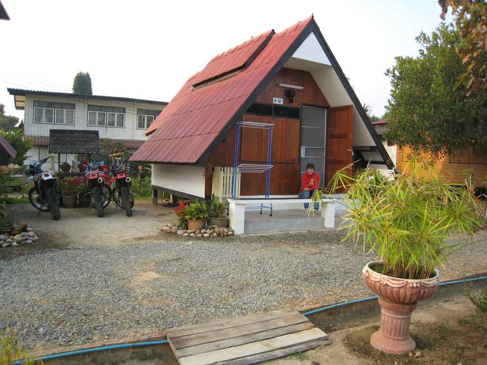 Vers Huai Pa, reprenons des forces et de l'essence à Pang Ung, prenons un bout de la RN 1263 goudronnée puis sur la gauche, une piste nous mène à Mae La Ka, trouvons la RN108, nous arrêtons à Kum Yuan, à l’hôtel Ban Farang à 9 euros la chambre, après 180 km dont pas mal de pistes, un très bon massage à l'huile c'était génial (env 4 euros l’heure)....repas dans un bon petit restau à 1 euro.