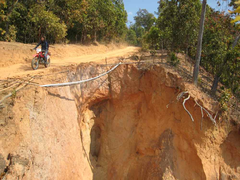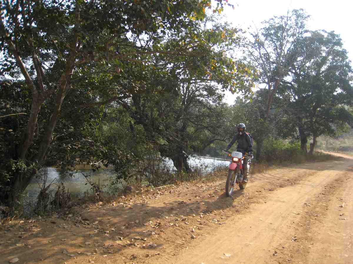 Nous commençons par du goudron vers le sud puis l'ouest, les motos sont agréables à la conduite nous lâchons le bitume à Huai Tong, nous traversons une région montagneuse assez sèche, nous arrêtons quelquefois pour voir cascades.