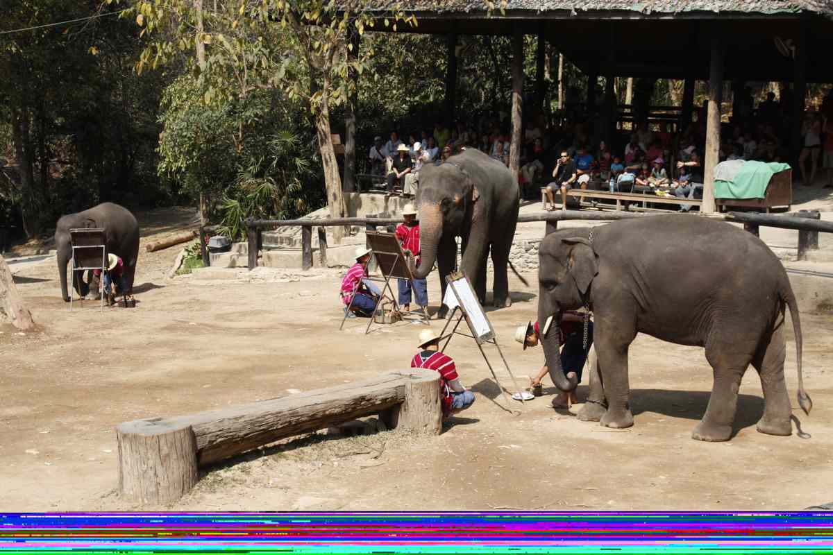 Ils arrivent aussi à faire pas mal de choses, jouer aux fléchettes, ranger de gros rondins de bois ( c'est à la base pour ce boulot, transport et guerres qu'ils ont été domestiqués ), peindre (résultats impressionnants )...
