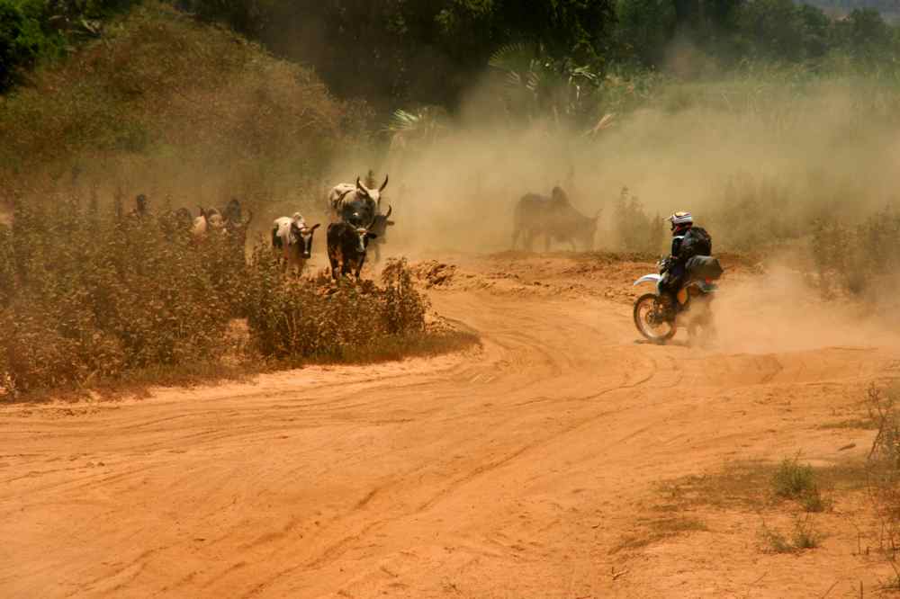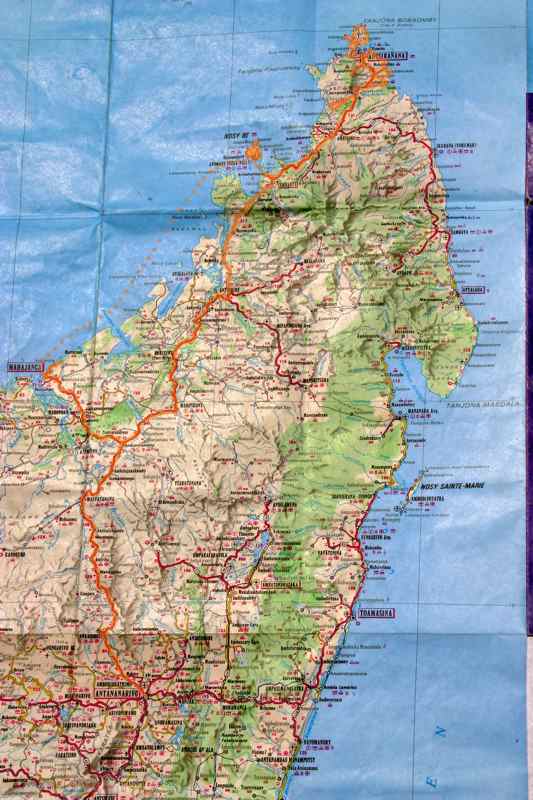 Tana (Antananarivo) - Diégo Suarez(Antsiranana) 1200km, circuit 3000km de moto, la RN4 doit être totalement goudronnée en 2008 ce qui n’était pas notre cas en 2005