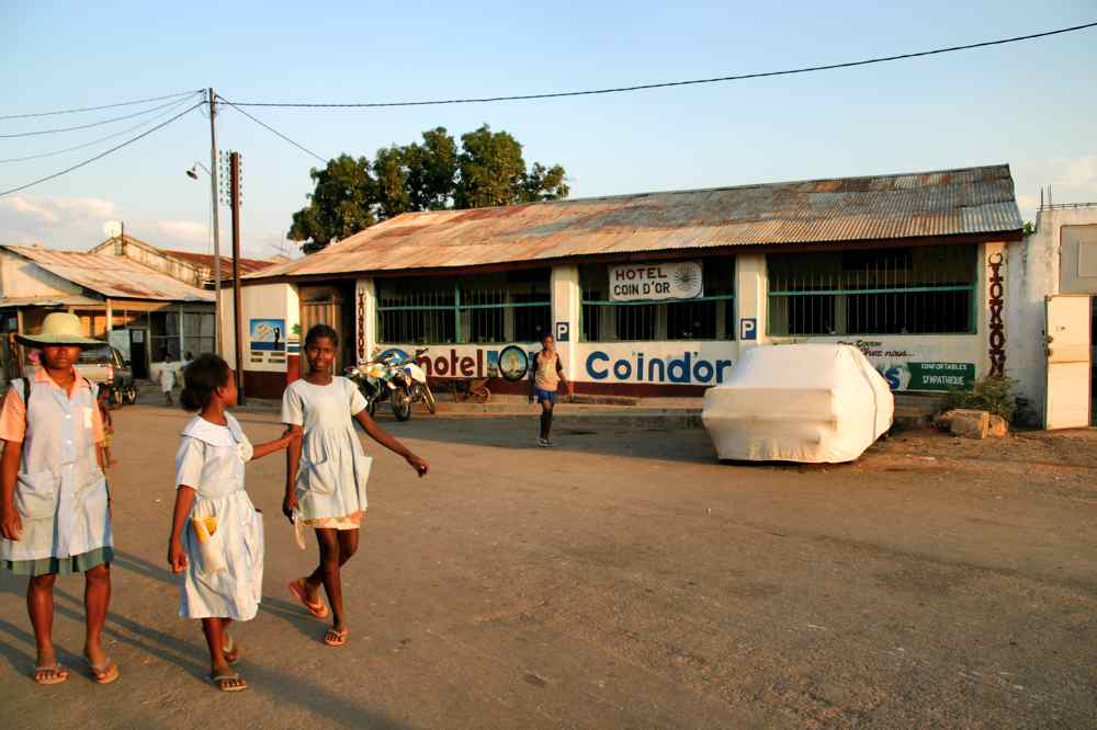 La journée s’est soldé par quelques gamelles sans gravité, nous continuons tranquillement sur le goudron une centaine de km jusqu'à Ambanja que nous atteignons le soir, fourbus. En fait, nous étions dans le bon coin, du bureau déserté, une piste nous aurait mené rapidement au goudron vers le sud mais il y a des fois où il est prudent de faire demi-tour pour limiter les dégâts. Nous avons pris peu de photos car trop occupés dans nos galères, la chaleur, la dangerosité des pistes et l‘ inquiétude de retrouver notre chemin, tout aurait été si facile avec un guide.