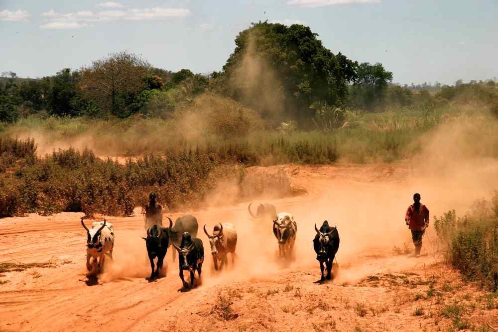 Piste au nord de l’ Ankarana, chariot tiré par 6 zébus assez rare à voir
