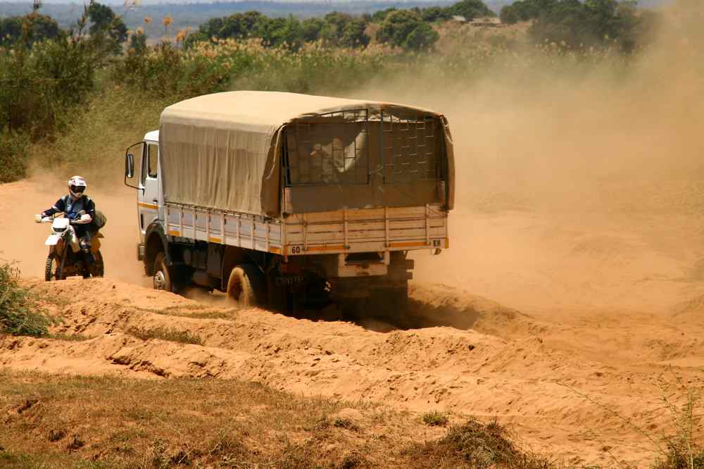 Une seule solution, foncer sur le coté et monter dans le remblais de poussière pour laisser les 2 ornières libres pour le camion
