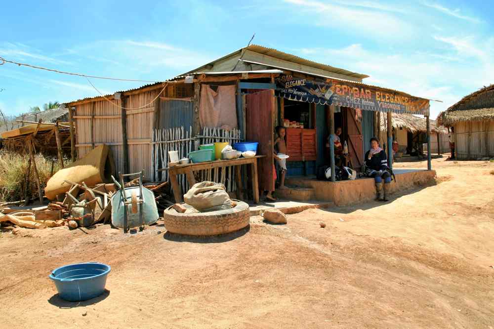 Comme nous le pressentions, la nuit a été mauvaise, trop chaud, inconfortable, moustiques…à 6h30 nous sommes le cul sur les motos et profitons de l’éphémère et agréable fraîcheur matinale, un régal. A Ambondromamy, nous prenons la RN4 vers Diego-Suarez, la route est en travaux, l’entreprise Colas et ses véhicules oranges au logo losange jaune est omniprésente, un sacré chantier cette nationale 4. Ces travaux dopent l’économie locale mais que se passera t’il une fois ce long ruban de bitume terminé ? Les villages que nous traversons on des allures de Far-West, des baraquements en bois montés anarchiquement le long de la RN sont alimentés sporadiquement par des groupes électrogènes. Le petit trait rouge RN4 de la carte IGN se transforme en une piste sablonneuse, chaotique, il reste quelques plaques de l’ancien goudron du temps du protectorat des Français.