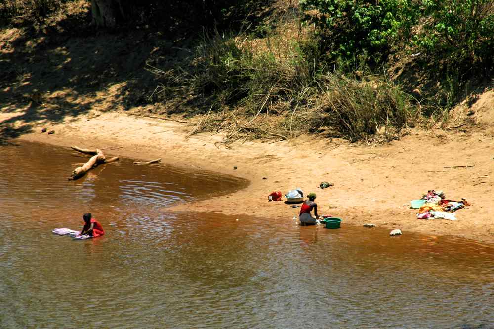 La buanderie sert aussi de salle de bain, piscine, terrain de jeu pour les enfants