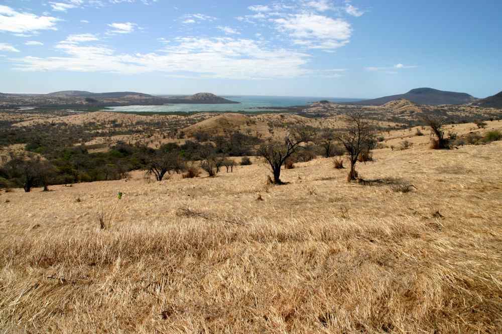 La baie de Diégo  balayée par les vents, l’herbe sèche est prête à s’enflammer à la moindre étincelle