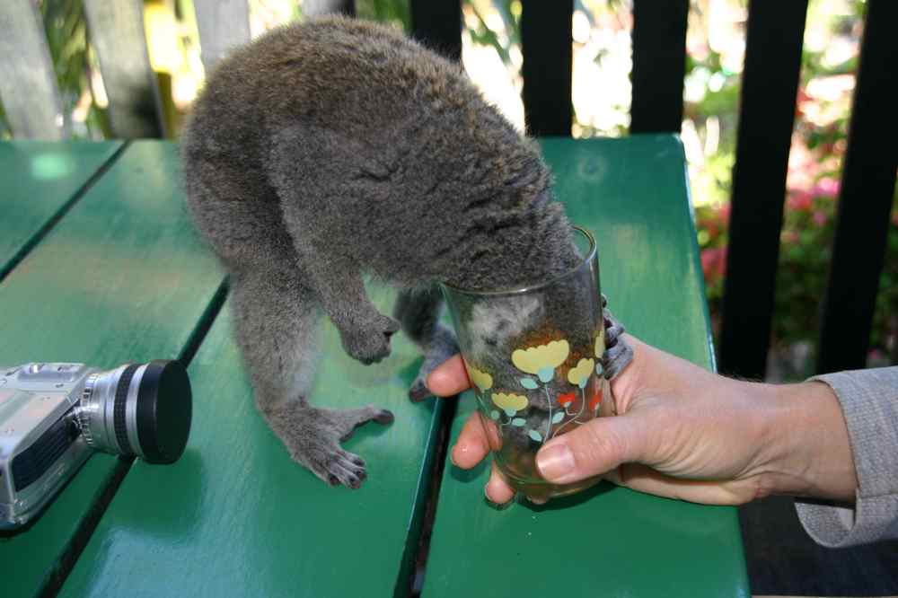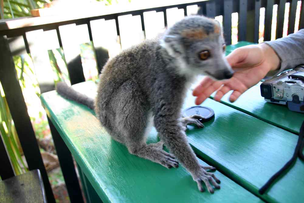 Une bonne et longue journée de moto, 300 bornes de TT, sans Nanard, nous n’en aurions pas fait la moitié, trop de petits chemins dès qu’on quitte la piste 4x4 qui mène au phare, inutile de parler d’un moindre panneau. Nous retrouvons notre hôtel à Raména et notre petit copain lémurien envahissant.