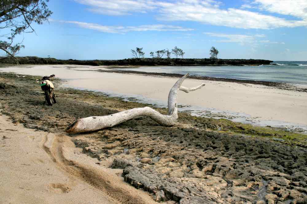 Nous prenons un frugal pique-nique à l’ombre salutaire d’un rocher et à l’abris du vent au bord du canal du Mozambique qui commence ici, en face, à quelques centaines de km il y a les Comores et le continent africain, les eaux bleue sombre sont tumultueuses, les courants nombreux. Nous revenons vers le sud en logeant côte Ouest, arrêt au village pêcheur de Vohilava plus loin, en nous dirigeant vers la baie des Courriers, par un sentier côtier, nous sommes coincés par la marée montante et trouvons un chemin qui remonte sur le plateau. Nous revenons de nuit à Diégo