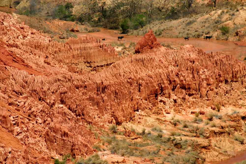 L’érosion creuse la latérite rouge en créant des Lavakas