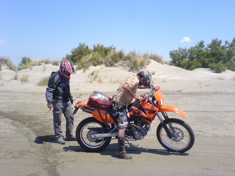 Une KTM orange en galère dans le sable on dirais moi ... :mrgreen: