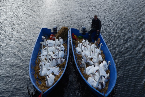 A Hambourg, l'un des plus vieux métiers est celui du passeur de cygnes qui les emmène hiverner sur un lac plus petit avec des courants pour que l'eau ne gèle pas, à l'abri des rigueurs de l'hiver.