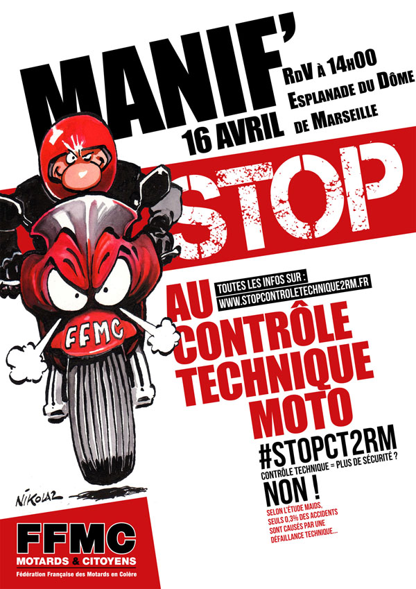Comme vous devez le savoir, l'actuel gouvernement nous ressort SA solution contre l'accidentologie routière concernant les 2RM : le contrôle technique. Le délégué interministériel de la SR, E.Barde, nous a déjà raconté sa petite histoire d'achat de scoot aux pneus nazes pour justifier la manœuvre, qui aura lieu dans un premier temps lors de la revente, pour être étendue par la suite au rythme automobilesque à un tarif annonce de 50 à 70€. touts ça pour un contrôle visuel que nous avons appris à réalise lors du permis. Sauf que les accidents de 2RM sont essentiellement dus à d'autres causes (cause tech. en gros 0.5%).