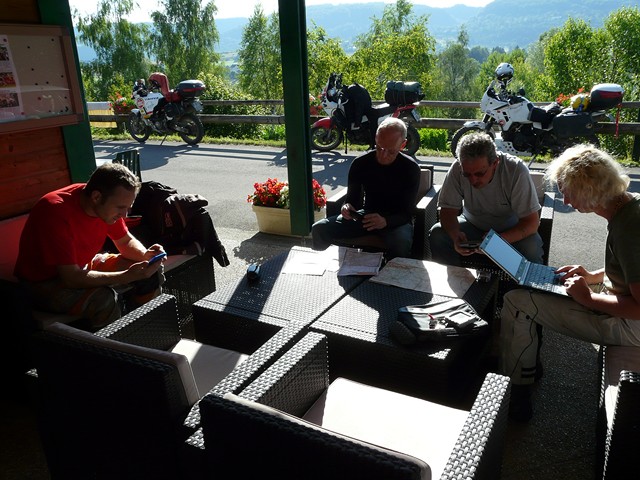 Nous déjeunons ensemble, chargeons nos motos et prenons la route en décidant de nous