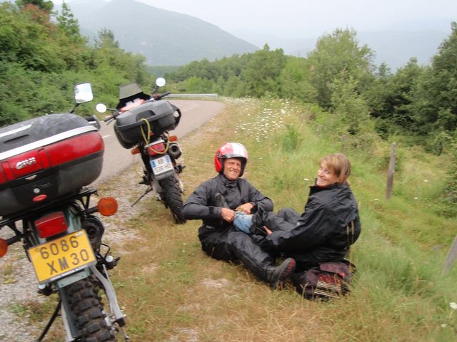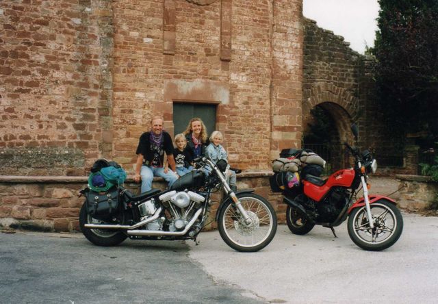 Nos filles installées à l'arrière de nos motos, nous avions filé en Espagne.... 5000 kms en 15 jours sans broncher