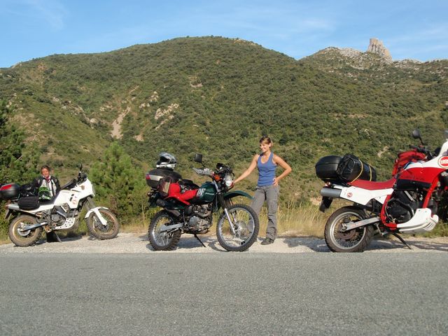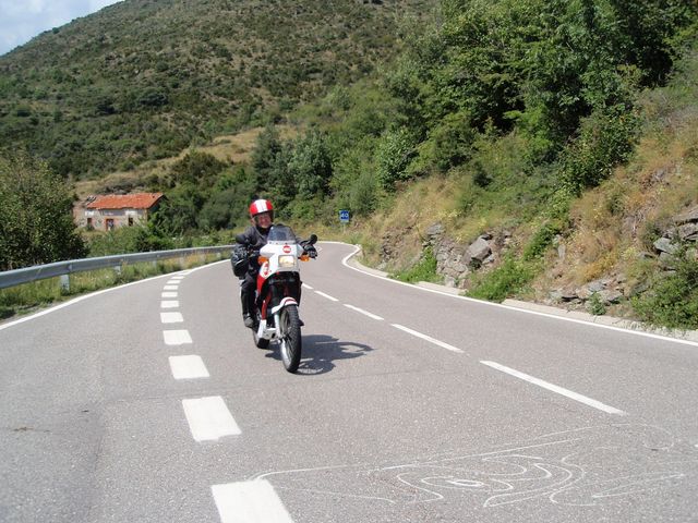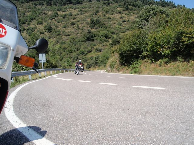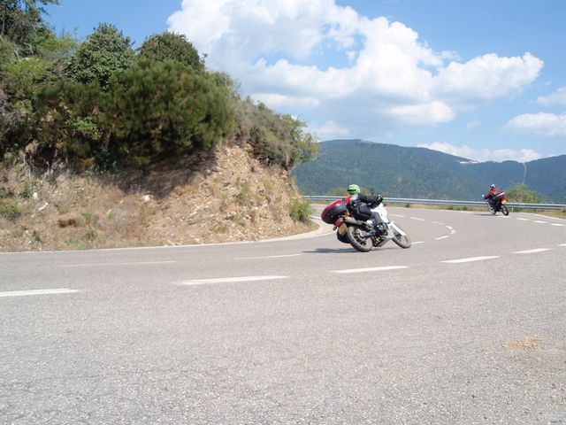 Après Béziers, on file vers les Corbières dont on ne se lasse pas...Lagrasse, Mouthoumet, Col del Prat, Cucugnan... Après une première nuit dans un camping près de Tuchan, le lendemain, nous découvrons une route superbe entre St-Paul de Fenouillet, Sournia et Prades. Des virolos non stop sur plus de 40 kms, d'abord dans la forêt et ensuite sur la crête.