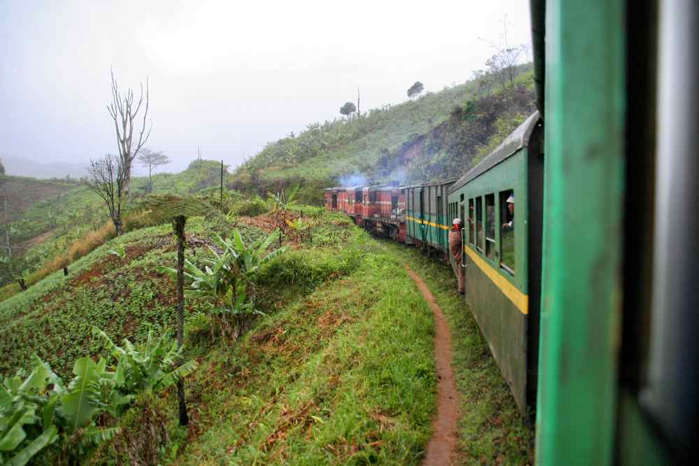 Nous passons des hautes terres jusqu’au niveau de la mer, en traversant la forêt tropicale et zones agricoles, chaque arrêts dans les gares donne l’occasion aux villageois de vendre leurs produits, fruits, beignets, écrevisses géantes, boissons….