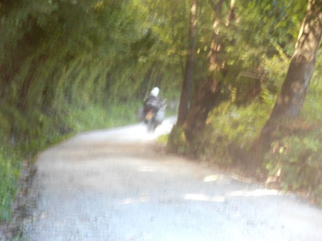 sous la pluie et avec nos pneus mixtes Mitas c'est une vraie séance de patinage pas très artistique