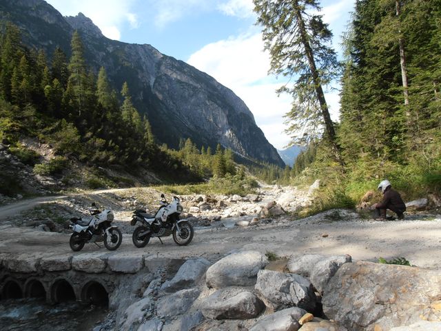 nos affaires et nos motos après Sto Stefano di Cadore à Campolongo