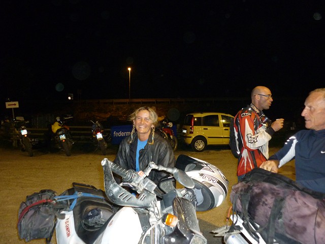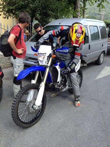 On m’aide à ramasser la moto, Mille grazie…tiens même pas mal, je repars…
