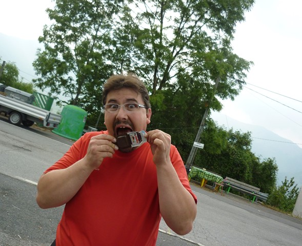 J'avais prévu de prendre l'Assietta à contre sens, mais au vu de l'heure, ça fait vraiment juste, tendance trop tard et ça rajoute 70km. Nous avons l'info par Mimi de l’existence d'un snack et du coup nous y engloutissons un sandwich (et une birra piccola)...