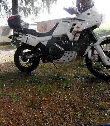 Après une cinquantaine de kms, Gégé s'arrête énervé dans un tunnel, il pleut à verse et nos motos chargées