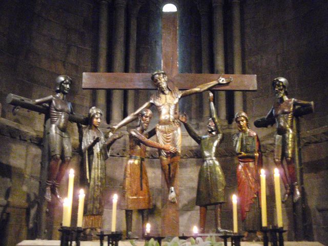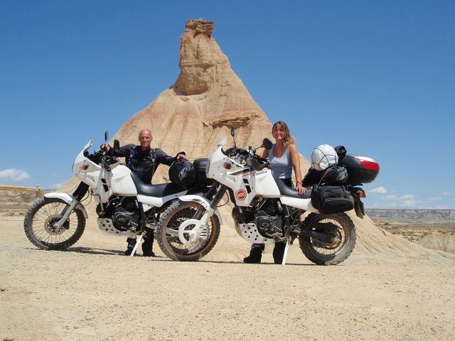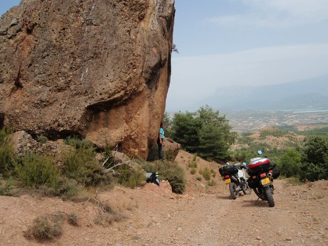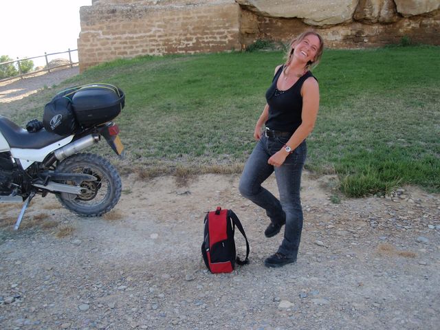 Le lendemain matin, visite de la basilique de la Pena qui domine la ville de Graus. Nous garons nos motos chargées, au centre-ville et après 20 mn de marche sur un chemin bien raide, où pour éviter de porter du poids inutile, GG laissera les clés sur le contact de la moto en plein centre-ville. Nous les retrouverons à leur place à notre retour