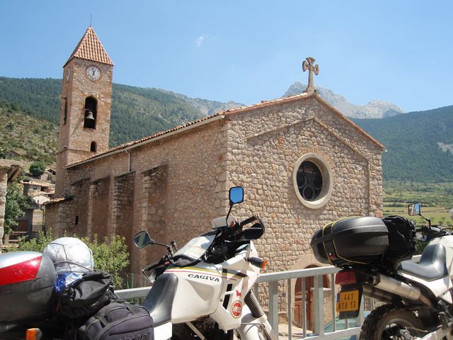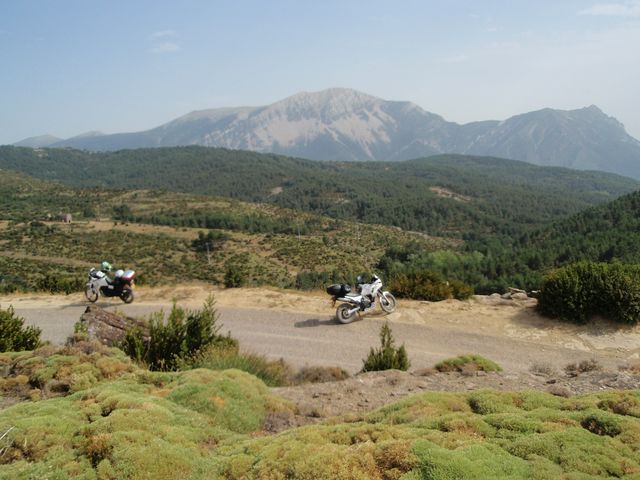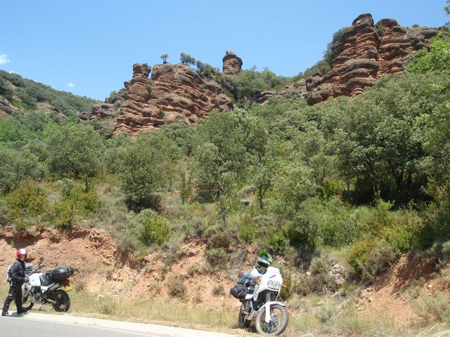 Non, nous n’avions pas prévu d’aller jusqu’à Saïgon, ni à Bogota Nous allons nous contenter de nous régaler sur le Coll de Nargo qui longe un Canyon Et nous mène dans une enfillade de virolos non-stop sur les Coll de Boixols, de Fadeilla par la L511 Après avoir emprunté la N230 pendant une petite portion, nous nous dirigeons vers Graus en prenant une dernière portion de pistes avant de planter notre tente.